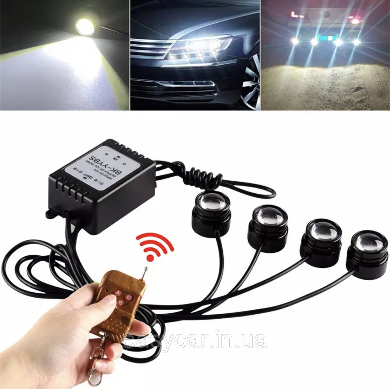 Денні ходові вогні-строби ДХО, стробоскоп 2 в 1 на 4 діоди 12 РЕЖИМІВ СТРОБОСКОПІВ